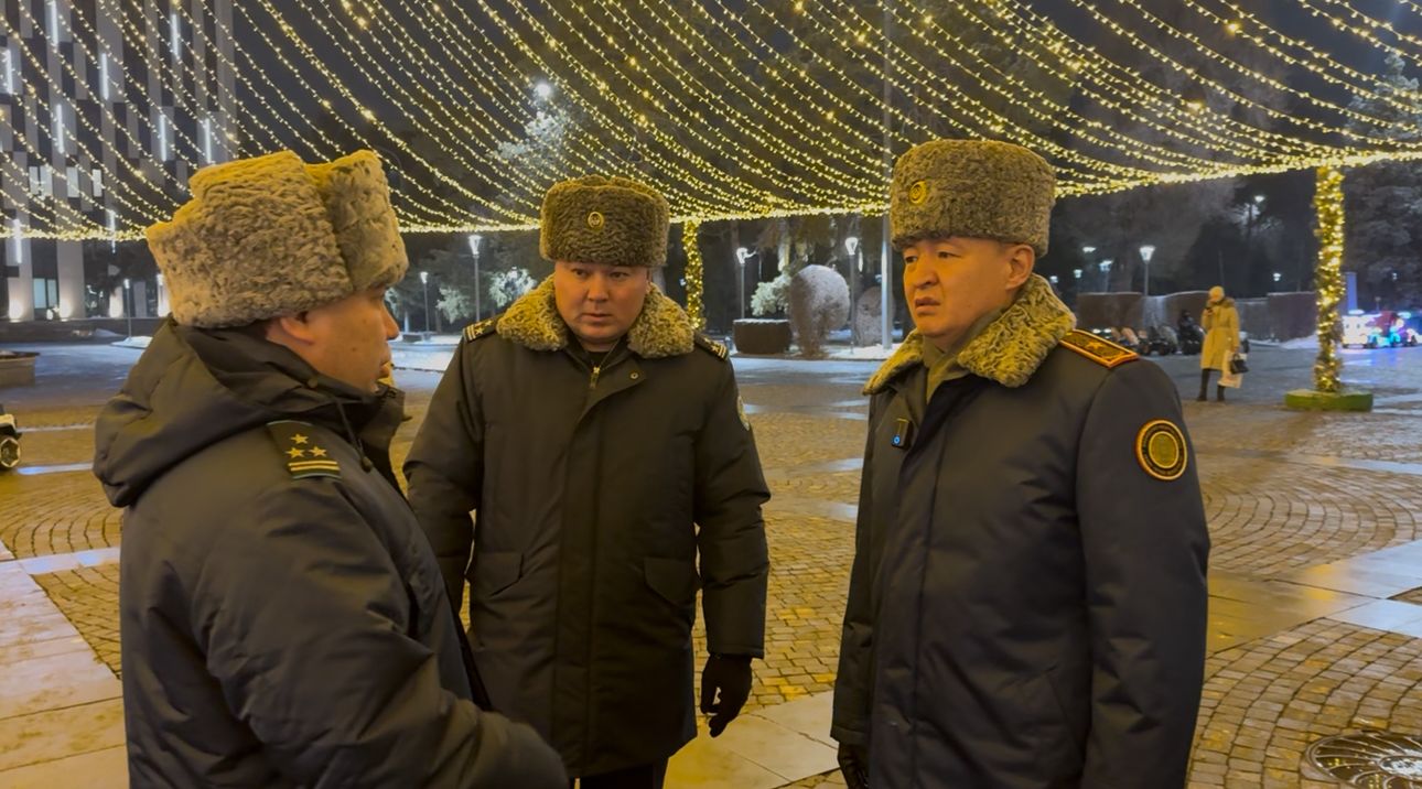 Тексеру азаматтар көп жиналатын орындарды да қамтыды — әкімдік ғимараты алдындағы жаңа жылдық шырша маңы. Мұнда қауіпсіздік бақылауының деңгейі, мүліктің сақталуы және полиция нарядтарының жедел әрекет етуге дайындығы бағаланды.