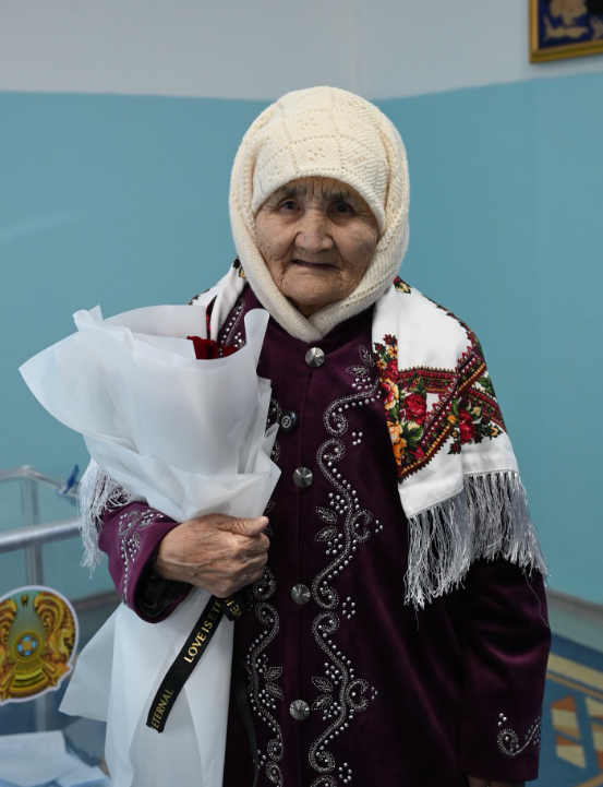 Ұзақ ғұмырында ел тарихындағы талай кезеңнің куәсі болған қария бүгінгі бейбіт әрі тұрақты өмірдің қадірін ерекше атап өтті. Сондай-ақ, дауыс бергеннен кейін жиналған жұртшылыққа ақ батасын беріп, елдің амандығы мен бірлігін тіледі.